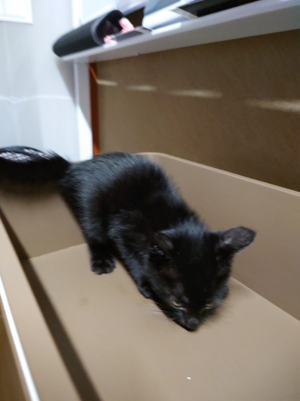 | 特徴(性格など) | 毛色は全身黒・お腹・パンツの部分に白色あります。 それが、また可愛らしいです。 性格は穏やかで、人馴ればつぐんの賢い子猫です。 |