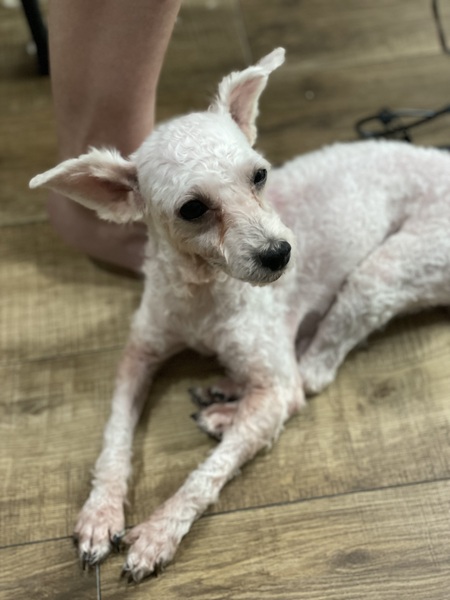 | 特徴(性格など) | ホワイト 元気いっぱいで色んなことに興味があるかわいい子です。人も大好き、犬も大好きで遊んで、遊んで~!と寄ってくる姿がとっても可愛いです。 毛の状態が悪かったため、1度丸刈りにしていますが、毛はまた生えてきます。 トリミングなどで整えてあげるともっともっとかわいくなると思います(*^^*) |