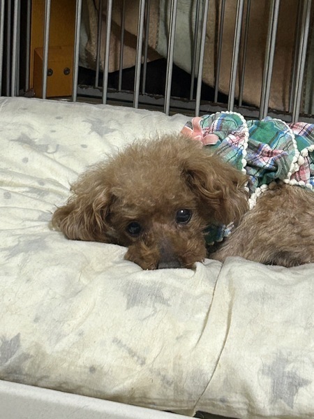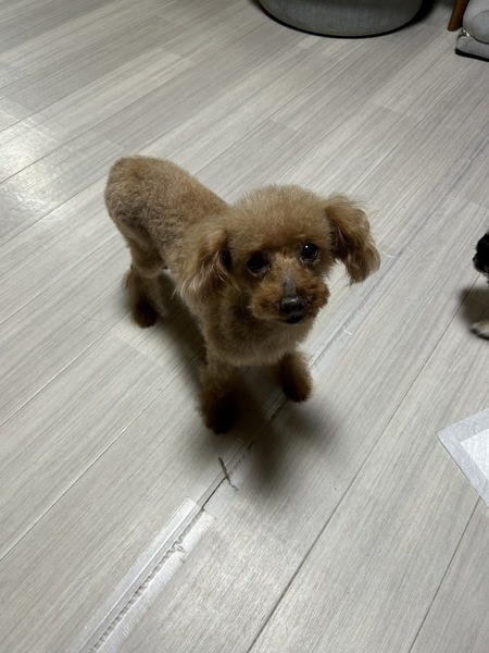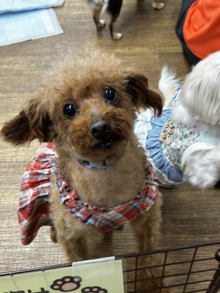 | 特徴(性格など) | 犬種 トイプードル 性別 ♀ 年齢 8歳くらい(2023年2月現在) カラー レッド 体重 3.6キロ 性格 甘えん坊さんです。対犬とも問題なく過ごしています。かまって欲しいトイプードルらしい子です。 ご飯 口腔内の状態が悪かったのですが、ドライフードも大丈夫です。手作りや缶詰めなどをトッピングして食べています。他のわんこと取り合いすることもなく、上手に食べます。 お散歩 まだ練習は必要ですが、少しずつできるようになっています。 お留守番 フリーで他のワンコと問題なく過ごしています。 トイレ シートの認識はあります。 保護時は鼻・前後脚・尻尾・耳に脱毛がありましたが、生えそろってきています。 |