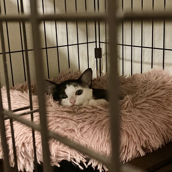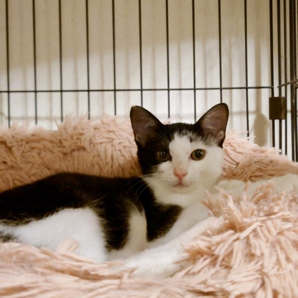 | 特徴(性格など) | 白黒の女の子です。 人が好きで甘えん坊です。 遊ぶのが大好きでたくさん走り回ります。 2023年9月 時点 ・体重:1.8kg ・ノミ・回虫駆除(ネフガード)済み ・FIV/FeLV:陰性 ・3種混合ワクチン2回接種済み |