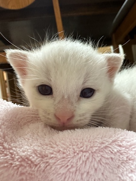 | 特徴(性格など) | 毛色→白 長めの毛が生えてきてるのでモフ モフさんになるかも。 性格→とても甘えん坊で人を認識すると一生 懸命よちよち歩きでついてきてくれ ます。 |