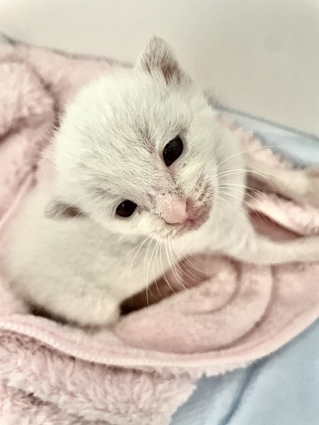 | 里親募集する理由 | 職場に止まっていた車のエンジンルームに 入っていて、炎天下の中だったためか 兄弟たちは死んでしまいましたがこの子だけが生き延びることができました。 救出後すぐに動物病院に連れて行くと、獣医さんにもこの子は奇跡の子だと言ってもらえました。 せっかく助かった命、一生危険のない涼しいおうちの中で幸せに暮らしてもらいたいです。 病院にてノミダニ、寄生虫駆除済みです。 |