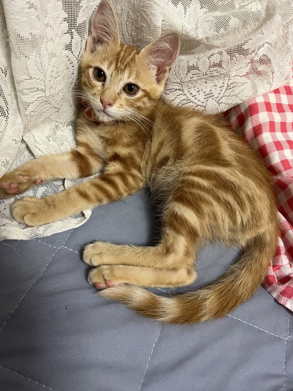 | 特徴(性格など) | 茶にマーブル模様の女の子。まだまだ幼ない印象です。どのような子になるかは飼い主さん次第と思われます。他の子猫との関係は良好です。 | ||