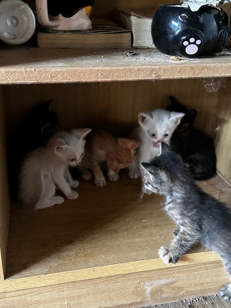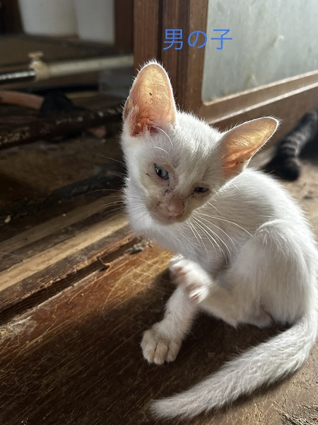 | 里親募集する理由 | 我が家で飼っている猫が、避妊前に脱走してしまい無事に帰宅しましたがお腹に子供がおり今回の募集となります。母猫は、子猫の里親が見つかり次第に避妊いたします。募集は、白柄3匹キジ柄1匹です。他に、キジ柄1とサビ柄1と茶白柄1おりましたが、里親が決まりました。画像は、顔が汚れておりますが現在は綺麗になってます。 | ||