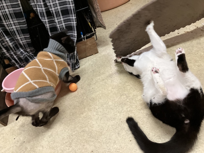 | 特徴(性格など) | けいくんはハチワレ柄の可愛らしいお顔立ちで、年齢は2歳前後くらいかと思われます。 元々人懐っこい方で、保護した当初はあまり警戒心は強くなく、慣れるのも早い方でした。 未だに他の初めての人には警戒してしまいますが、少しずつ慣れていけば警戒心も取れていくと思います。 けいくんは遊ぶのがとても大好きで、猫じゃらしの反応も良く、目で一生懸命追って、走り回って追っかけたりもして、元気に過ごしています。かと思ったら、ぐで〜んとなってのんびり過ごしていて、猫じゃらしにも反応が薄かったり、冷めたようなジト目になっていたりと、気ままでマイペースでもあります。 ナデナデも嫌いではなく、お尻を撫でると気持ち良くてお尻を突き上げたり、頭を撫でると目を細めて、気持ちいい〜って表情をしてくれたりしますが、撫ですぎると警戒してその場から離れてしまうこともあります。ブラッシングは別で顔周りが1番好きで、自分からブラッシングしてもらいにやってきたり、気持ちいい〜って表情もしてくれてその場に落ち着いてくれたりします。 ご飯はそんながっつくタイプでもなく、普通量を普通に食べてくれます。以前は残したりもしてましたが、最近はちゃんと最後まで食べ終わってくれています。あまり食には執着は無い方ですが、チュールは別で、ちょーだいちょーだいって感じで飛びついてきます。 けいくんは狭い所が好きなようで、猫一匹くらいしか入らない所にいることが多いです。自分の陣地みたいな安心できるのかもしれません。毛布の中に潜ったり、何かしらの中に潜りたがります。すると、他の子がモゾモゾしてる上から乗ってきたりして、一緒に戯れあったりしています。 その無邪気な姿がとても可愛く思えます。 そして、けいくんはエイズキャリアでもあります。エイズを発症してるわけではなく、ウィルスを持ってますよという事なのですが、エイズは感染率も極めて低いウィルスで、ウイルスを持っているすべての猫が発症するわけではなく、キャリアであっても室内で穏やかにのびのび過ごさせてあげる事で、ずっと発症せずに、そのまま天寿を全うする猫ちゃんの方がほとんどなんだそうです。 エイズとは関係なく全く別の病気で亡くなる子の方が多く、陽性・陰性で平均寿命に差がないとの統計も出ているそうです。 エイズキャリアが気になる方は、1匹飼いや同じ陽性の子と飼うか、部屋を別にする等をご検討してみていただいてはいかがでしょうか。 エイズキャリアだから素敵な家族に巡り逢えないなんて、とってもとっても悲しい事です。エイズキャリアでも関係なく、ご理解のある心の広い、心温かい、心優しい素敵なご家族様に出会えることをけいくんと心より願い、お待ちしております。 けいくんに安心安全な家族の温もりをた〜くさん味わせていただけないでしょうか。 安心していつでも家族に甘えられてたっぷり可愛がってくれる、のんびり楽しく幸せに暮らせる優しい素敵なご家族さんに出会えることを心より願っております。 どうか、けいくんを宜しくお願いします。 |