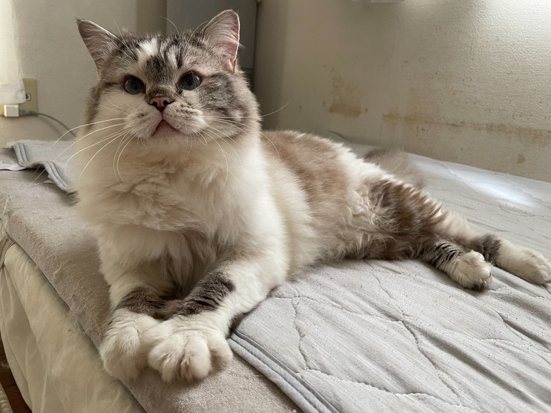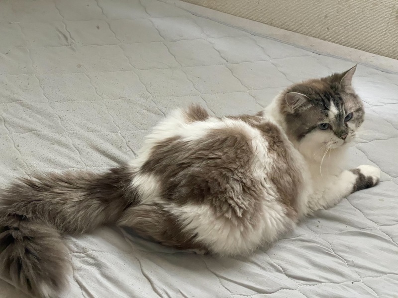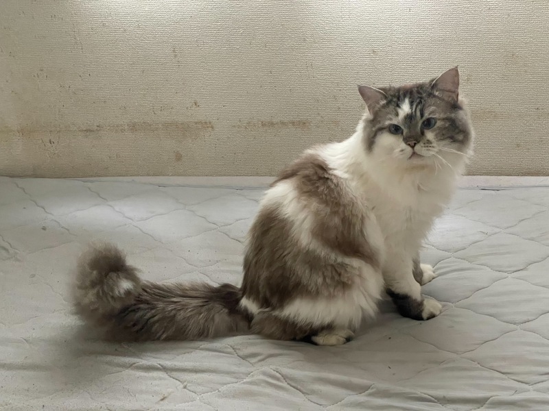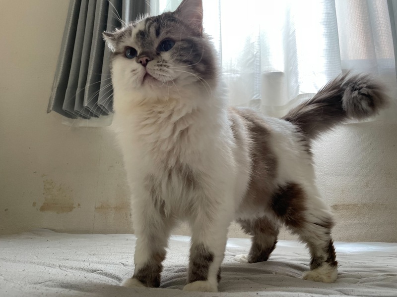 | 特徴(性格など) | 「ミヌエット×ラグドール」の混合の子になります。 全身白地にラグドールっぽい茶色カラーがところどころのっています。 性格は、とても人懐っこくなでるとすぐにゴロゴロと喉を鳴らして喜びます。 運動も大好きでおもちゃに全力でとびかかかる勢いで遊びます! また、食欲旺盛でごはんの音がすると一目散に食べに来ます。 |