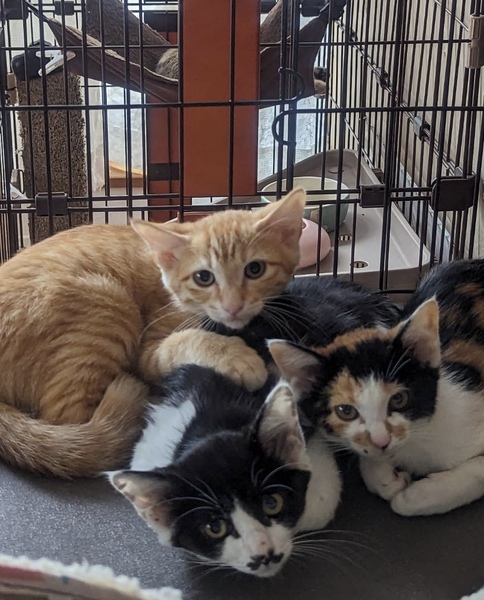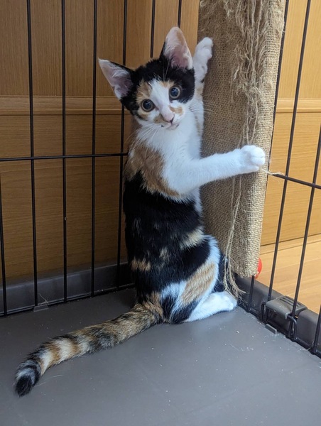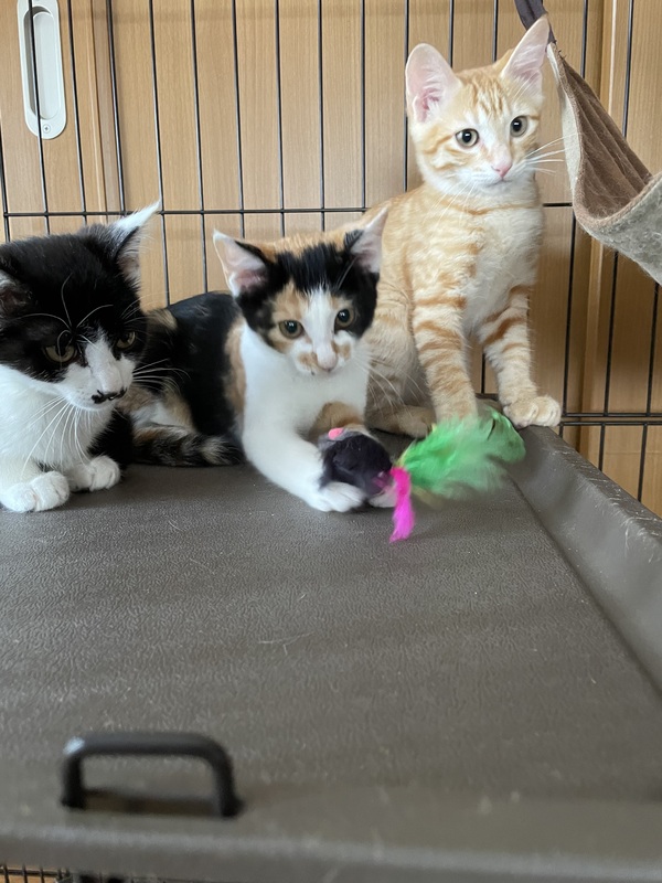 | 特徴(性格など) | 随分人馴れ出来て来ました。 まだまだ怖がりさんですが、遊ぶの大好き、食べるの大好きな可愛い子達です 三毛、黒白は女の子、茶トラは男の子 |