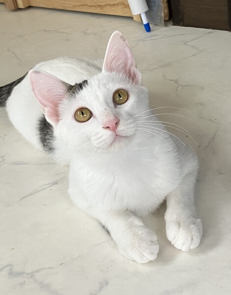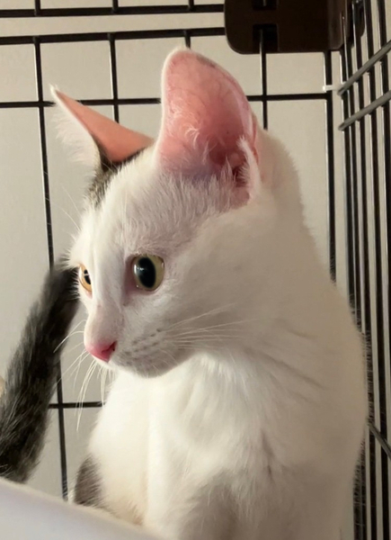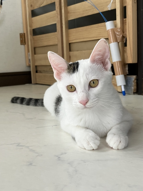 | 特徴(性格など) | 白い部分がとても綺麗で、手触りがシルキー☆彡 ノンちゃんと一緒でずっと撫でていたい感じです(*˘︶˘*). 右側だけある前髪と耳に先にちょっと模様があります。 長いシッポと長い手足のモデル体型☆☆ ちょっとビビリちゃんなので、追いかけると逃げますが、 お外を知らない仔なので、人にも猫にも優しいです。 |
