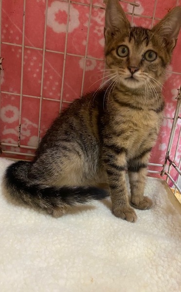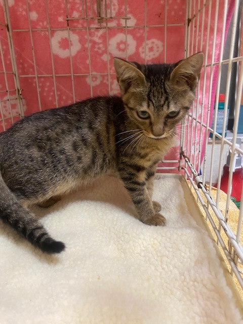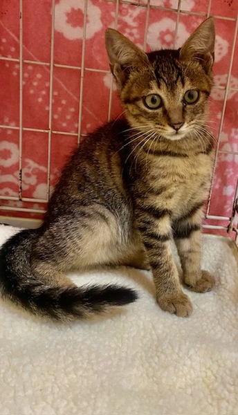 | 特徴(性格など) | キジトラでしっぽが長く、かわいい女の子です。 ひとなつこくて他の猫ちゃん達とも仲良く遊んでいます。 |