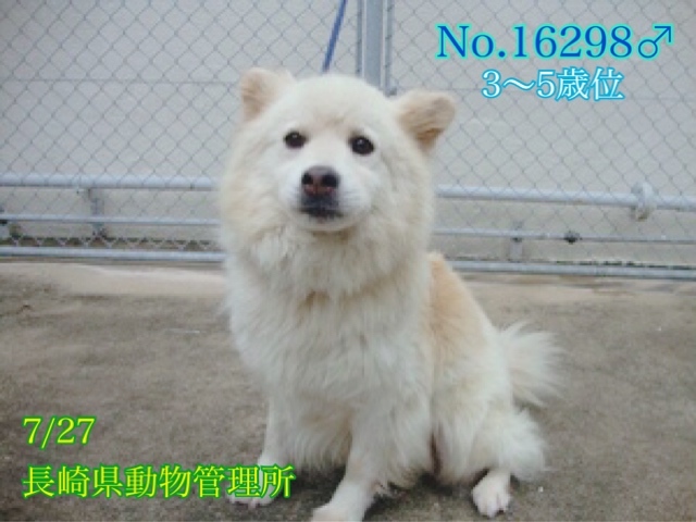 | 里親募集する理由 | ♡優しくフレンドリーなとっても可愛いモフモフ男の子。推定になりますがまだ若そうで3〜5歳位? 中型で体重は15キロ位に見受けられますฅ•ﻌ•ฅ 寂しく助けを待っています! 訳も分からず突然連れて来られてどんなに寂しく心細いか。一日も早く温かい家庭の中で過ごさせてあげたいです。 ⭐️県外、遠方の方でも譲渡の条件が合い、良縁に恵まれましたら里親になっていただけますのでどうぞ宜しくお願い致します! ※ ※長くなりますが犬猫と里親様の幸せの為にも、募集内容を熟読し、必ずご家族とよく相談をされた上、ご家族全員の賛同を得られてからのお問い合わせ をお願い申し上げます。 ⭐️外飼いでは無く、室内飼育で家族の一員として迎えて下さる方、「引き渡し方法」のところにあります【①〜のアンケート】にご回答と共にお問い合わせをいただけますよう、お願い申し上げますm(_ _)m 長崎県雲仙市南串山町にて彷徨っていたところを7/27に保護され保健所収容、飼主の迎えは無く現在は長崎県動物管理所へ移送されてきています。 いつから彷徨っていたのか( ; ; ) この暑さの中、空腹、雨風にも苦しんできたことでしょう。 その後は初めての知らない場所に収容されてずっと不安で寂しいと思います。。 今までどう生きてきたのか知る由もありませんが( ; ; )人懐こくて他犬に対しても穏やかな性格花丸君です♡ フレンドリーで誰が何処を触っても大丈夫。 尻尾フリフリで撫でて〜と擦り寄って甘えてきて本当に可愛いです(^^) 無駄吠えもしません。お座りを知っているようです。 ◎今は毎日2回、栄養バッチリの高品質なプレミアムフードのカナガンとデビフ缶詰を食べさせています。無理もありませんが暑さにバテ気味のようでドライフードだけだと食が進みません( ; ; ) 可哀想に爪も伸びています。 綺麗にブラッシング、シャンプーをして栄養をつけたらもっと凛々しい美犬クンになる事でしょう(^O^)/ 優しい職員さん方が怖くないよ、今度こそは幸せになれます様にと毎日触れ合いながら、一生懸命にお世話してくださっています。 職員さんが連れ出してくれるお散歩も、嬉しくて楽しそう♪出だしはグイグイと引っ張りますが興奮がおさまれば段々と落ち着いてお散歩出来ます問題無く制御出来る程度です? ※ですが、急な物音や知らない場所にビックリして怖がって、咄嗟に逃げようとする可能性も大いにあり得る事だと思いますし、その時の力、引きの強さも想定し、突然の走り出しや高い塀や壁・柵の飛び越え・急な方向転換や首を振って後退りからの首輪抜け、胴輪抜けにはご用心です!! まだ呼び戻しも覚えていないので、もし逃がしてしまったらピューっと走って行ってしまうタイプかもしれません!(>_<) もし逃がしたらもう捕まえられない!というようにお考えくださいm(_ _)m ※繰り返しになりますがどんな子であっても、慣れてきても、常に、脱走・逃走には充分な注意と最大限の配慮をお願いしております! この子のペースや体力をみながら、毎日朝晩のお散歩、必要な運動の時間をしっかり取ることの出来るご家庭、 譲渡後には早急な病院受診が可能なご家庭を希望しておりますm(_ _)m 捨てられたのでしょうか、迷子でしょうか。 何故ここに居なければならないのでしょう。 人間よりはるかに短い犬生なのに。 何故大切な家族を直ぐに探さないのか、 何故最後の時まで愛せないのでしょうか… 保護時、茶色の首輪に千切れた鎖が繋がっていて外飼いされていたようです。首輪に迷子札や鑑札は何も付いていませんでした。 言葉を持たない大事な家族を守る為に首輪、胴輪に迷子札・鑑札を必ずつけて頂きたい、そして、ずっとこんな悲しい状況のままでいたより保護されて良かった!と考え、この子に幸せを、室内で一緒に暮らせる温かい本当の本物の家族を見つけたいと願っております⭐︎⭐︎ 人間が焦らずにゆっくり見守りながら、愛情を持って接し、しっかりとお散歩にも連れ出して行けば、この子はきっと新しい家庭に馴染んでいけると、本当は思い切り甘えて目一杯遊んでほしいのだと思います。 辛かった過去があるという点も踏まえ、人は怖くないんだよと、ずっと人を信じてくれる様に、広い心でドンとこい^_^と仰って頂ける方、この子をこの先も尻尾フリフリ♪で、ニコニコの笑顔にしてくださる方、いらっしゃいませんか? どうぞ宜しくお願い申し上げますm(_ _)m ⭐️必ず室内飼育で、譲渡後速やかに病院受診、健康診断、(血液検査、尿便検査、ノミダニ・フィラリア予防や爪切り、シャンプー等)混合ワクチン、去勢手術をする事が可能な、なるべくお留守番が少ない、沢山優しくスキンシップやコミュニケーションで触れ合っていただけるご家庭。 ⭐️フィラリア予防実績、混合ワクチン、狂犬病予防接種の有無も不明です。 フィラリア陽性の可能性も有り得る事となります(>_<) ⭐️室内でのトイレの躾も1からとなります。 未去勢で片足を上