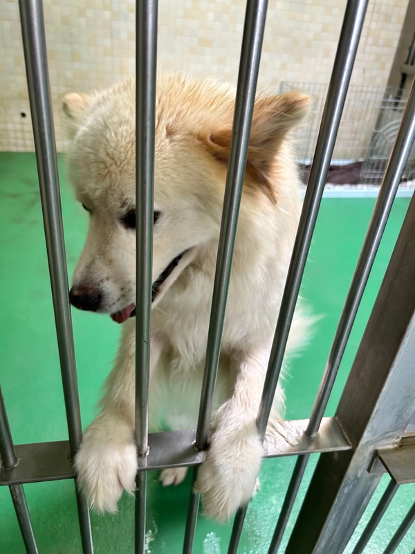 | 特徴(性格など) | ご覧いただきありがとうございます ⭐【 ①〜⑰のアンケート】にお答え頂けない方、アンケート内容が曖昧な方は、譲渡のお話を進めていけない為、お返事は致しかねますので予めご了承くださいませm(_ _)m ↓ ♡優しくフレンドリーなとっても可愛いモフモフ男の子。推定になりますがまだ若そうで3〜5歳位? 中型で体重は15キロ位に見受けられますฅ•ﻌ•ฅ 今までどう生きてきたのか知る由もありませんが( ; ; )人懐こくて他犬に対しても穏やかな性格花丸君です♡ フレンドリーで誰が何処を触っても大丈夫。 尻尾フリフリで撫でて〜と擦り寄って甘えてきて本当に可愛いです(^^) 無駄吠えもしません。お座りを知っているようです。 ◎今は毎日2回、栄養バッチリの高品質なプレミアムフードのカナガンとデビフ缶詰を食べさせています。無理もありませんが暑さにバテ気味のようでドライフードだけだと食が進みません( ; ; ) 可哀想に爪も伸びています。 綺麗にブラッシング、シャンプーをして栄養をつけたらもっと凛々しい美犬クンになる事でしょう(^O^)/ 優しい職員さん方が怖くないよ、今度こそは幸せになれます様にと毎日触れ合いながら、一生懸命にお世話してくださっています。 職員さんが連れ出してくれるお散歩も、嬉しくて楽しそう♪力もあり出だしはグイグイと引っ張りますが興奮がおさまれば段々と落ち着いてお散歩出来ますし問題無く制御出来る程度です? ※ですが、急な物音や知らない場所にビックリして怖がって、咄嗟に逃げようとする可能性も大いにあり得る事だと思いますし、その時の力、引きの強さも想定し、突然の走り出しや高い塀や壁・柵の飛び越え・急な方向転換や首を振って後退りからの首輪抜け、胴輪抜けにはご用心です!! まだ呼び戻しも覚えていないので、もし逃がしてしまったらピューっと走って行ってしまうタイプかもしれません!(>_<) もし逃がしたらもう捕まえられない!というようにお考えくださいm(_ _)m ※繰り返しになりますがどんな子であっても、慣れてきても、常に、脱走・逃走には充分な注意と最大限の配慮をお願いしております! この子のペースや体力をみながら、毎日朝晩のお散歩など、必要な運動の時間をしっかり取ることの出来るご家庭、 譲渡後に早急な病院受診が可能なご家庭を希望しておりますm(_ _)m 人間が焦らずにゆっくり見守りながら、愛情を持って接し、しっかりとお散歩にも連れ出して行けば、この子はきっと新しい家庭に馴染んでいけると、本当は思い切り甘えて遊んでほしいのだと思います。 辛かった過去があるという点も踏まえ、人は怖くないんだよと、ずっと人を信じてくれる様に、広い心でドンとこい^_^と仰って頂ける方、この子をこの先も尻尾フリフリ♪ニコニコの笑顔にしてくださる方、いらっしゃいませんか? どうぞ宜しくお願い申し上げますm(_ _)m ♡今後の健康の為にも、引き続き良質なフードを与える事が可能な方。 ⭐️必ず室内飼育で、譲渡後速やかに病院受診、健康診断、(血液検査、尿便検査、ノミダニ・フィラリア予防や爪切り、シャンプー等)混合ワクチン、去勢手術をする事が可能な、なるべくお留守番が少ない、沢山優しくスキンシップやコミュニケーションで触れ合っていただけるご家庭。 ⭐️ フィラリア予防実績、混合ワクチン、狂犬病予防接種歴の有無も不明です。 フィラリア陽性の可能性も有り得る事となります(>_<) ⭐️室内でのトイレの躾も1からとなります。 未去勢で片足を上げて排尿します。 何かと手がかかり大変ですが(広めのL字型 トイレスペースやペットシート、マナーベルトを用意など)覚悟と根気・理解で受け入れて下さる方m(_ _)m ※譲渡後はお早めの健康診断、去勢手術、その際に歯石が有れば除去も一緒にお願いしますm(_ _)m ⭐️出来れば中型〜大型犬の飼育経験があり自信のある方。 叩いたりせず愛情を持って接することが出来る方。 ⭐️躾、毎日朝晩のお散歩や運動、スキンシップやコミュニケーションに充分時間をあてられる方。 今後場合により、トレーナーさんに依頼やトレーニング教室等も視野に入れて犬の為にも、里親様ご家族の為にも、しっかり学びながら向き合い考え、対応してくださる方。 何卒宜しくお願い致しますm(_ _)m 以上の点を踏まえ、この子が置かれている状況、寂しかった、傷ついているであろう心をご理解の上、全て受け入れ、寄り添いながら愛情を注いでくださるご家庭で可愛がっていただきたいと願っております。 保健所収容された全ての子達は身勝手な人間による被害者であり、何も悪くありません( ; ; ) 家族の一員として生涯大切にしてくださる優しいご家庭とのご縁が結ばれ、お散歩から戻っても嫌な檻の中では無い、家族の皆さんとずっと一緒に居られるお家、厳しい暑さや寒さにも、もう安心して快適に過ごせるお家が見つかりますように☆⭐︎♡♡ この子は今まで人間を信じ、人間と過ごしてきた事がある筈です。 1日も