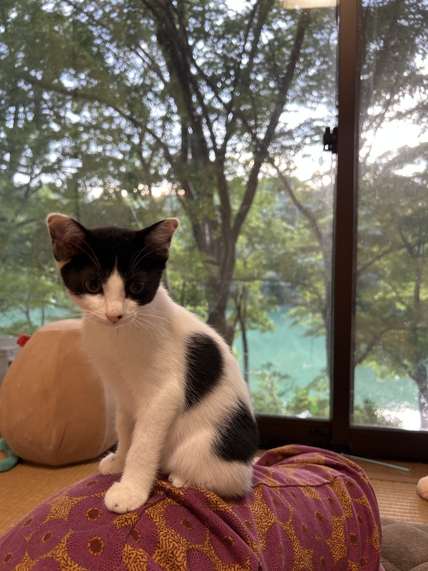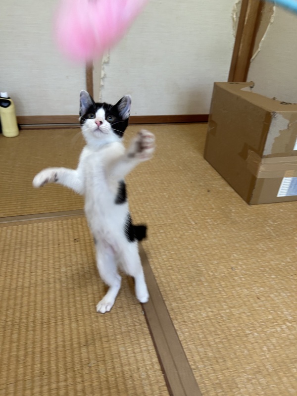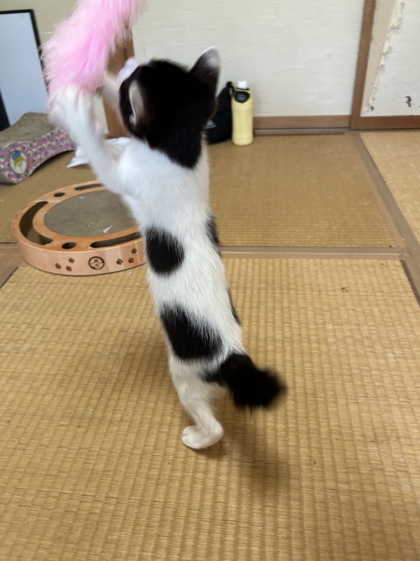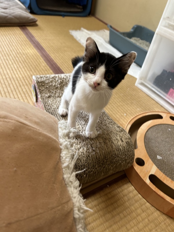 | 特徴(性格など) | 白黒の女の子、鍵しっぽがチャームポイントです。 かなり甘えん坊で人が大好きです。 膝の上にすぐ乗ってきて、かわいいです。 血液検査済み、エイズと白血病は陰性です。 |