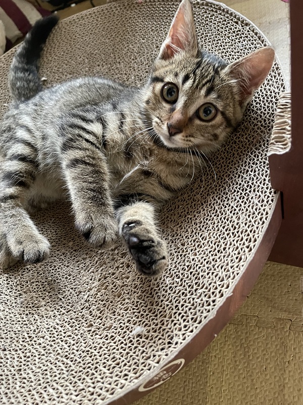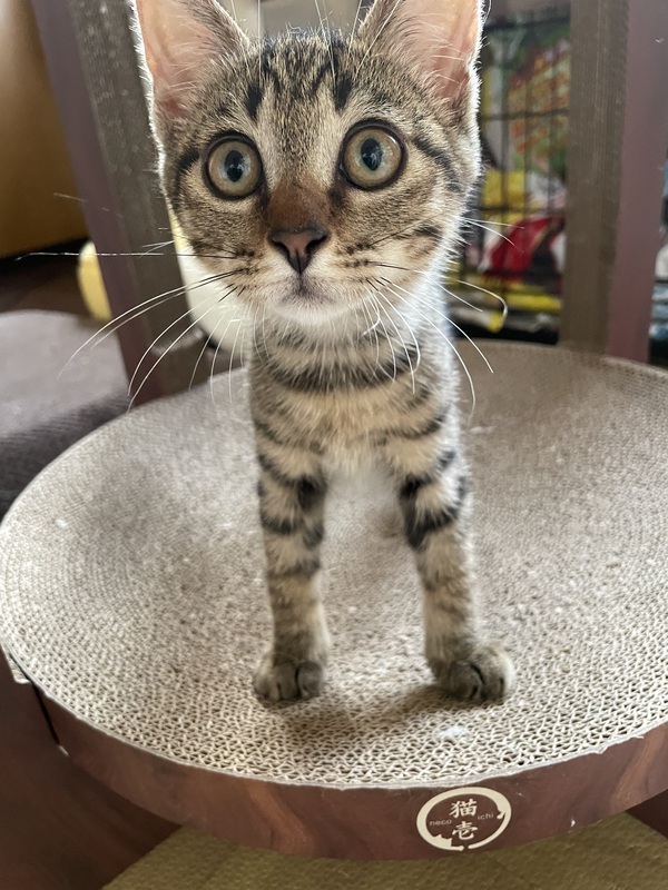 | 里親募集する理由 | 7月に地域の野良猫を団体さんが一斉に保護・TNRをしてくださいました。子猫・臨月妊婦は保護し、それぞれ譲渡に向けて家猫訓練。譲渡に向けて養育していただいております。 その中、みなし子で兄妹もいなかった子を個人で預かり我が家で家猫訓練をしてきました。 |