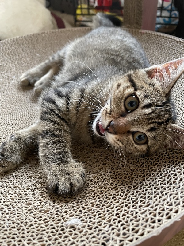 | 特徴(性格など) | 保護時はシャーシャーで触らせてもらえませんでしたが、慣れるとゴロスリの甘えん坊になりました。 まだ突発的な事には臆病で隠れてしまう事があります。 |