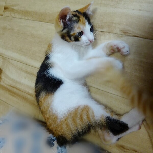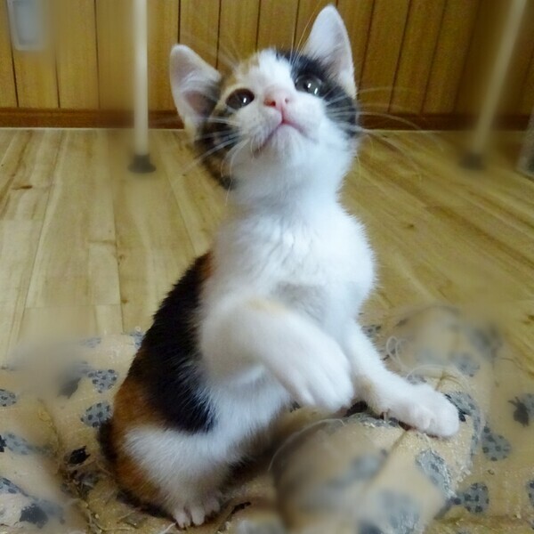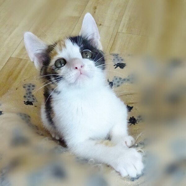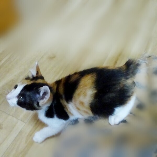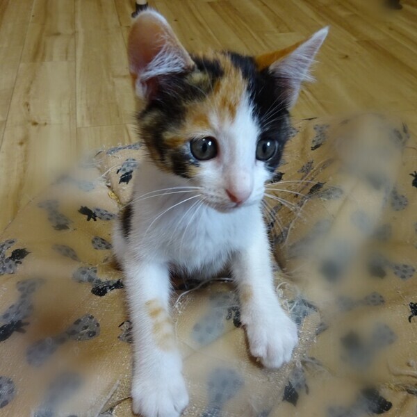 | 特徴(性格など) | 色:三毛 鼻の色:薄ピンク 体の特徴:珍しい)しっぽが短いジャパニーズボブテイルです!超短いプリプリ可愛いお尻尾です! 性格:おっとり、のんびり 人懐っこいです。 最新の写真は、Instagramでご確認ください。 実物は写真よりずっっっっと可愛いです! |