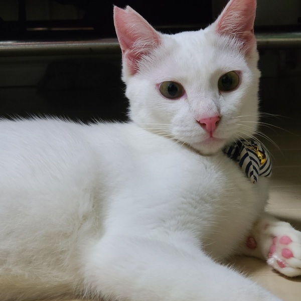 | 特徴(性格など) | 穏やかで人間にも猫にも優しい男の子です。甘えん坊ですが聞き分けもよい本当に可愛い大人猫です。真っ白で大きいですが、心が子供で初心者でも飼いやすい本当に性格の良い愛されキャラです。 | ||