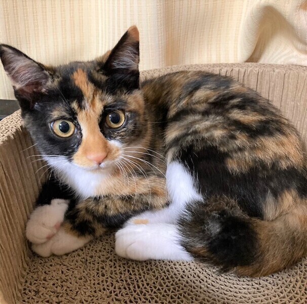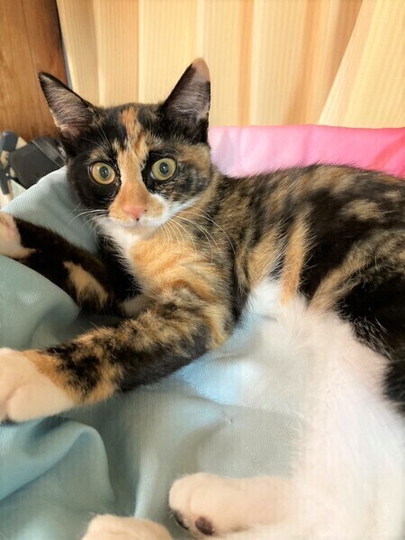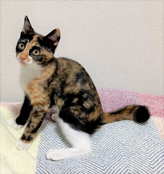 | 特徴(性格など) | 【仮名】ひまわりちゃん 【性格】 クリクリおめめのひまわりちゃん☆ 三毛好きにはたまらないルックスと ツンデレ感を持っている女子です。 ナデナデは好きだけど抱っこはイヤ! でもおヒザは好き~♪ なんでしょう?このツンデレさん(^^;) ヒモ系のオモチャが好きでパワフルに遊びます♪ 一人では緊張MAXになってしまうので 先住ちゃんのいるオウチが良いと思います。 ※1ピキ譲渡可 |
