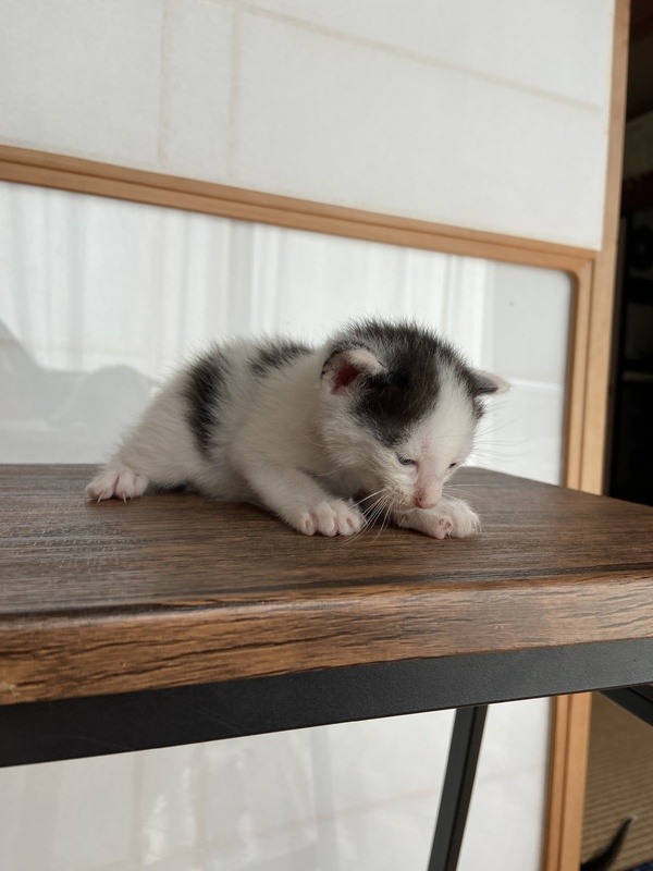 | 特徴(性格など) | 白黒・ハチワレのかわいい3兄弟です。全員男の子です。 離乳前ベビーなので、離乳後、もしくは離乳食からご対応いただける方を募っています。 みんなとっても可愛いお顔で、よちよち歩きがたまりません╰(*´︶`*)╯♡ 我が家、もしくはかかりつけの動物病院で受け渡しが可能です。よろしくお願いします。 |