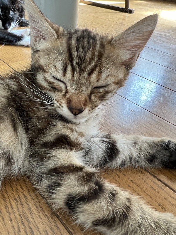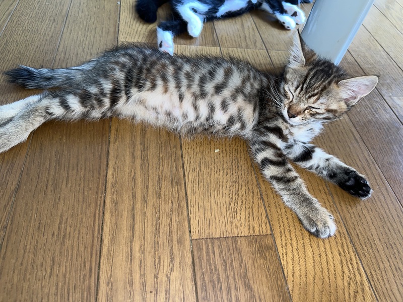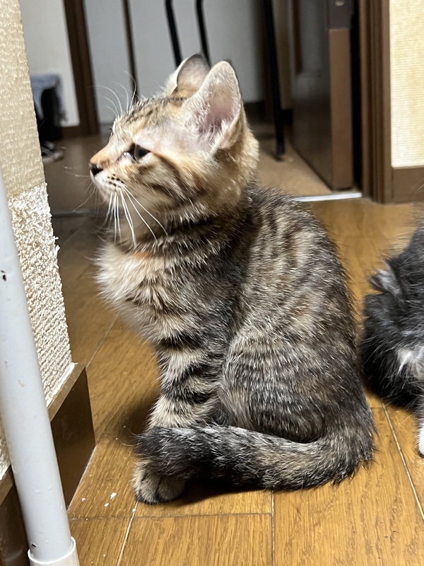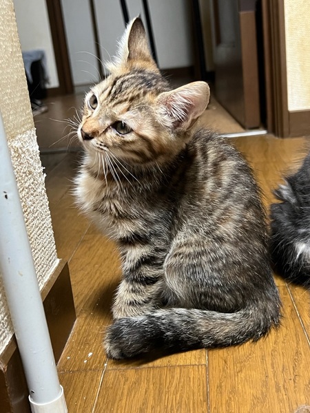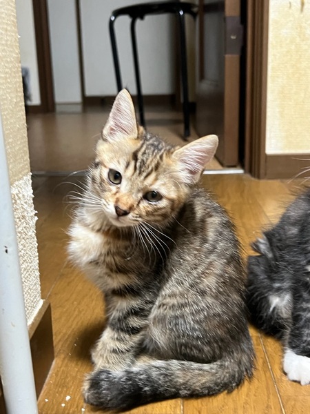 | 特徴(性格など) | ✴︎キジトラ2 ✴︎雑種 ✴︎メス ✴︎元気いっぱい 元気いっぱいキジトラちゃん2号! 1号とよくじゃれあって、母猫大好きです。 尻尾がまっすぐ細くて綺麗な子です。 キジトラ1号も見てみてください! 成猫の先住猫とも仲良く過ごし、猫慣れしています。住んでいる人も多いので人に怯えることはないと思います。 兄妹たちと毎日楽しく遊んでます。 ご飯の入ってる瓶を振って音を鳴らすとダッシュで来ます(^^) |