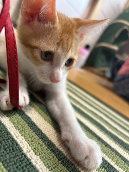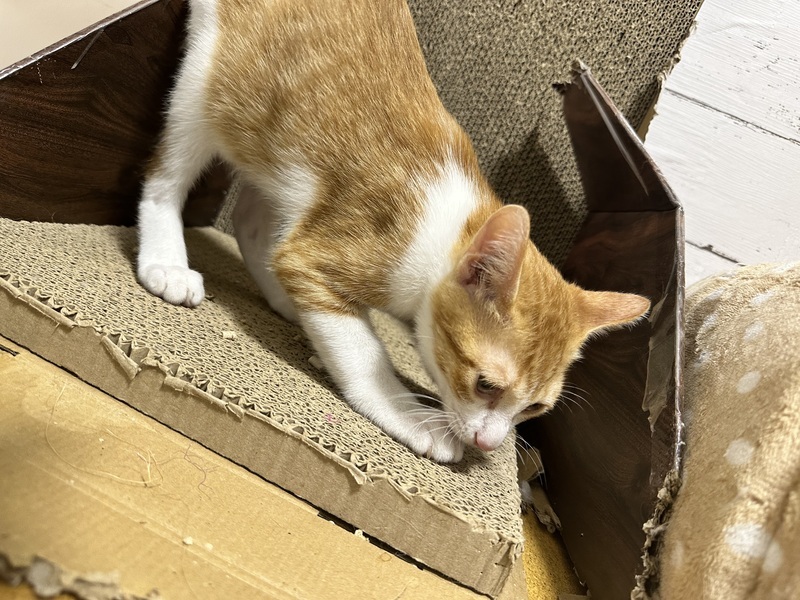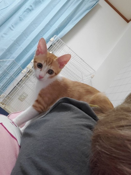 | 特徴(性格など) | 茶白の男の子ですが、性格はThe茶トラの ヤンチャでワンパクで男の子らしい子です! 遊びに来た人の髪の毛をむしったり 他の猫も全然平気です。 おもちゃもタワーも大好きで 近い歳の子がいたら楽しそうです。 |