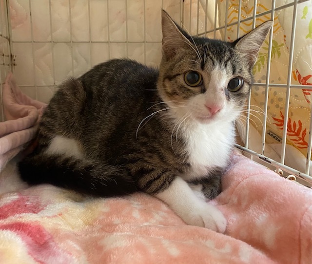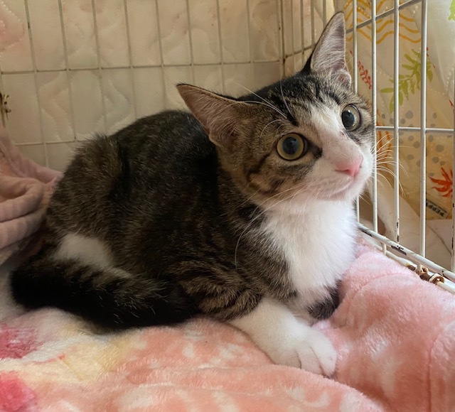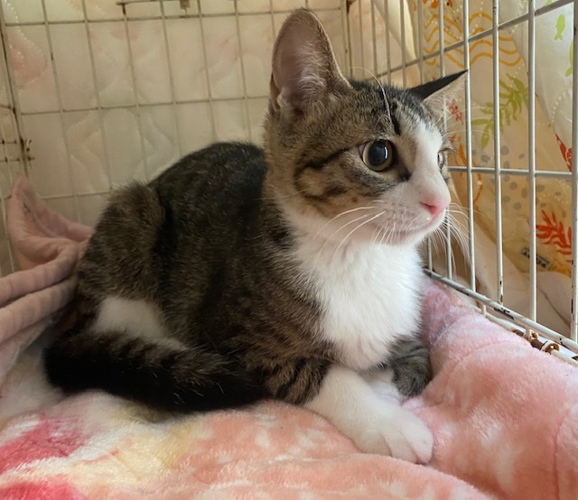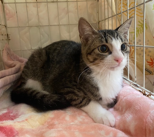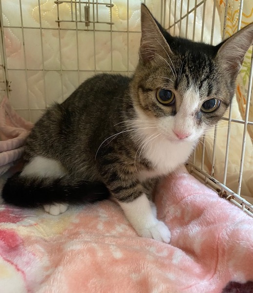 | 特徴(性格など) | キジ白でしっぽが長く、可愛い女の子です。 | ||