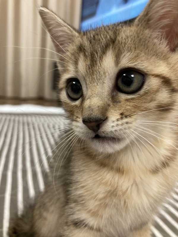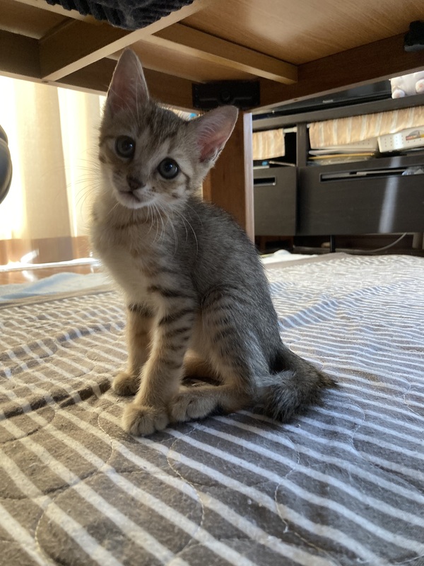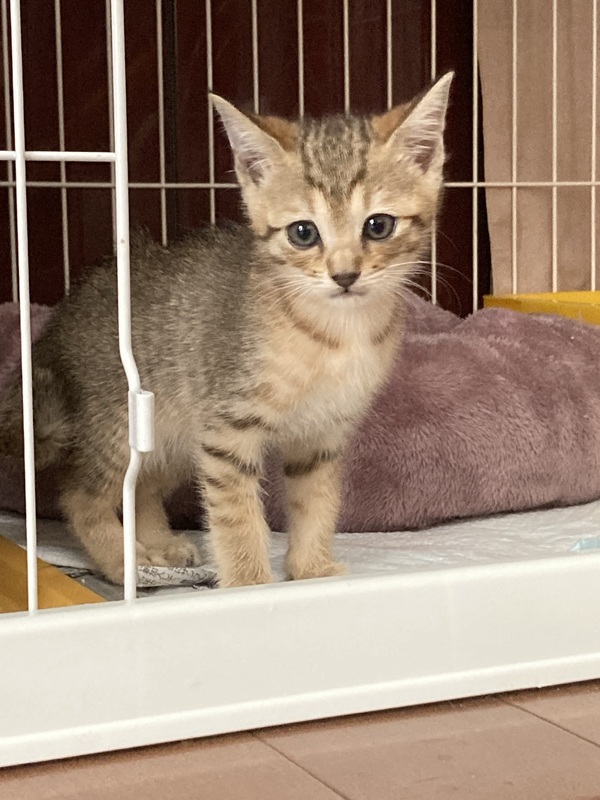 | 特徴(性格など) | キジトラ 子猫特有のキトンブルーの瞳。 とても人懐っこい。 愛想があり元気いっぱい。 遊ぶのが大好き。 ご飯も良く食べ、トイレも1人で出来ます。 |