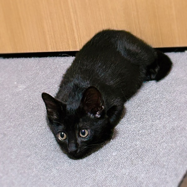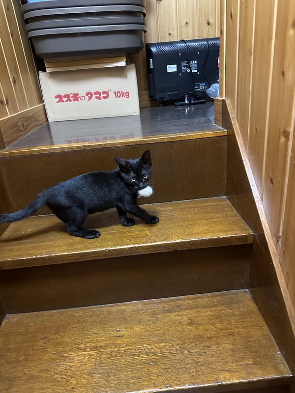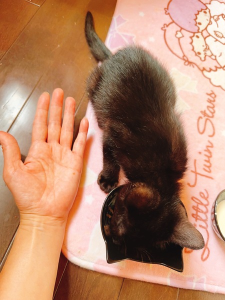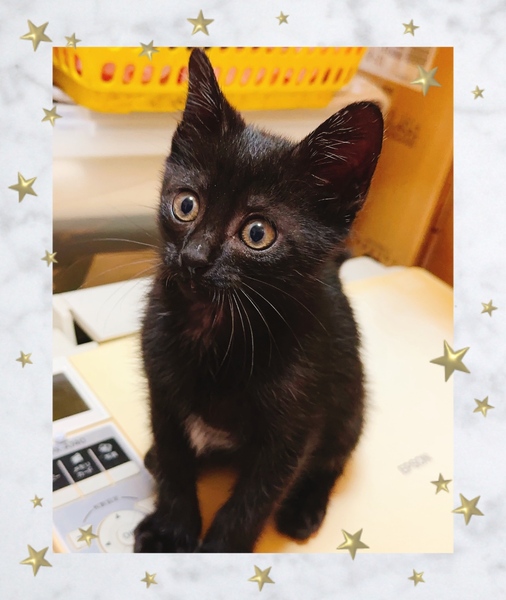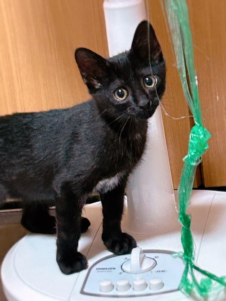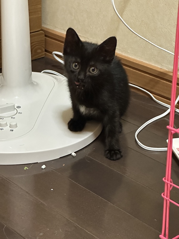 | 特徴(性格など) | 黒猫、胸にブイみたいな感じで白い毛あり。 ワクチン1回済み。 健康診断異常無し。 1人遊びできるようになりました。 シャンプーも出来ます。 トイレもしつけ済みです。 |