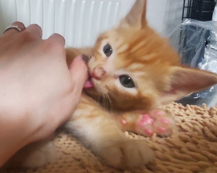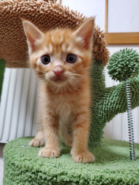 | 特徴(性格など) | 【募集状態】予約募集です。生後2か月を迎え1回目のワクチン接種後に譲渡となります。 【仮名】あげ オス 【生年月日】2023年7月中旬生まれ 推定1か月 【種類】MIX 【毛色】レッドタビー 【性別】オス 【去勢】未(適齢になり次第,飼い主様で必ずお願いします) 【駆虫】実施予定 【ワクチン】近々接種予定 【猫エイズ・猫白血病】子猫のため未検査 【健康状態】良好です。 【性格】甘え上手です。膝の上に登ってきます。猫じゃらしが大好きです。一緒に保護した兄弟猫と駆けまわって遊んでいます。 |