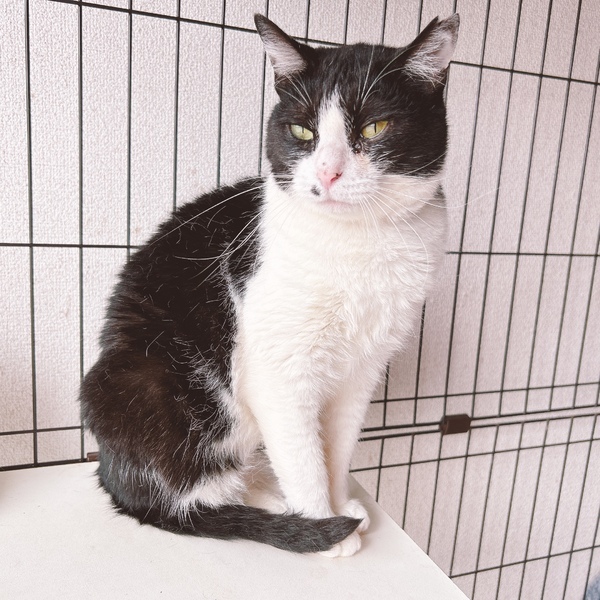 | 特徴(性格など) | 白黒のハチワレ。 髭袋の黒い斑点がチャームポイント。 クールなお顔をしています。 【性格】 たたずまいがかっこいい姉御肌! ささみタイプのおやつが大好きで、怖がりながらも手から食べてくれます! 警戒心はまだまだ強いけど、ご飯もトイレも問題ない優等生ちゃんです! 【その他】 まだ警戒心が強いのでゆっくり見守ってほしいです。 襲ってくることはありません。 |