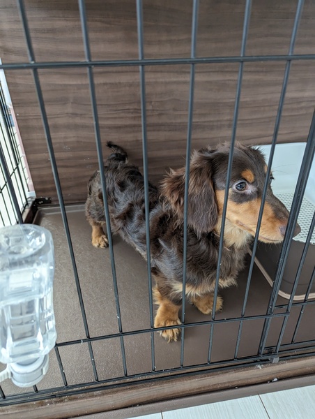 | 特徴(性格など) | 色はチョコタンです。5キロくらいです。 おすわり、待て、お手、できます! ボールで遊ぶのが大好きで、とても人懐っこいです! お散歩はまだあまり行けていませんが、ビクビクすることもなく走ってます✨ トイレ認識は50%くらいです! エサはシュプレモをあげています。 狂犬病ワクチン接種済み。 ノミ・ダニ、フィラリアのお薬飲んでいます。 |