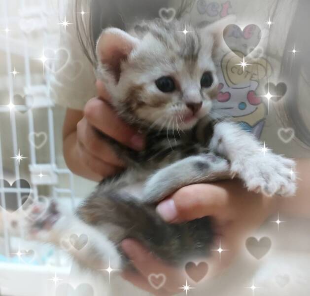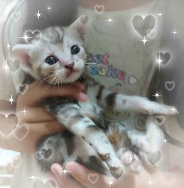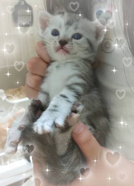 | 特徴(性格など) | シルバーに少しクリームが入ったパッチカラー。 渦巻模様の縞模様と背中のバタフライマークがチャームポイントの綺麗なクラシックタビーです。 現在はミルクと離乳食を食べています。 健康面は特に問題なく順調に育っています。 情報サイト引用 アメリカンショートヘアは、穏やかで陽気な性格で人気を集めています。 人によく懐き比較的丈夫な猫種です。 また、素直で賢く、しつけもしやすいとされています。 |