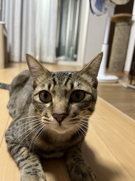 | 特徴(性格など) | 濃い茶系のキジトラ 抱っこと膝の上が大好きで、触ってもらえるのが嬉しい甘えん坊の男の子。 性格はおとなしくておっとりしています。 他の猫とも仲良くできる子です。 怖がりで人見知りをしますが、2〜3日で慣れて甘えてくれるようになります。 |