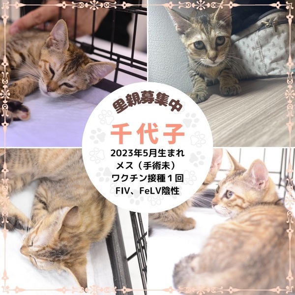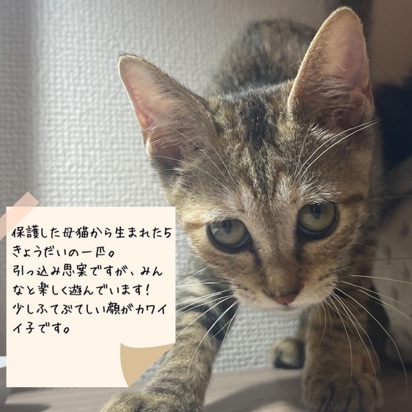| 特徴(性格など) | 明るい茶色のきじとら 性格は控えめで 不貞腐れたような顔がとても愛らしい子です |