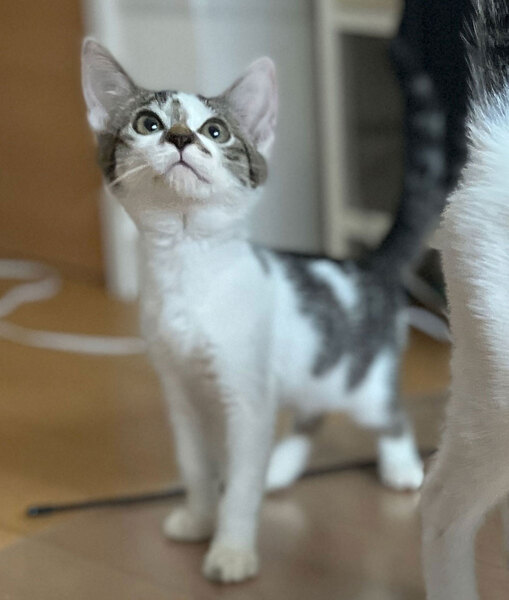 | 特徴(性格など) | 大吉くんは兄弟の中で一番小柄です。 丸顔で、鼻の頭の茶色の模様がチャームポイント。 尻尾は真っ直ぐで長くシマシマ。 良く遊び、良く食べ、良く寝ます。 元気いっぱいで大きなお兄ちゃんたちと同じように遊んでいます。 兄弟だけでなく、他の保護仲間の子たちとも、 すぐに馴染んで甘えたり一緒に寝たりしています。 最初だけ人見知りしますが、おもちゃで遊んだり おやつもらったりできる子なので、 ぜひ、面会に来ていただいて、 一緒に遊んでもらいたいと思います。 |