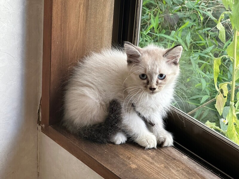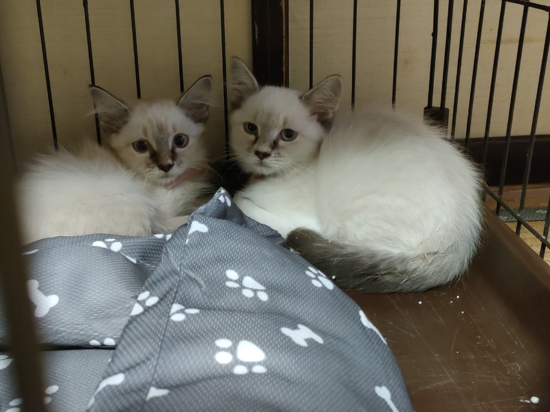 | 特徴(性格など) | 便検査・内外駆虫済み ワクチン1回目接種済み シャム系の男の子1匹と女の子2匹です。 野良の子猫なので警戒心が強いです。 これから人馴れさせて終生可愛がってくれる里親様を探しています。 ※メス1頭トライアル中です。 |