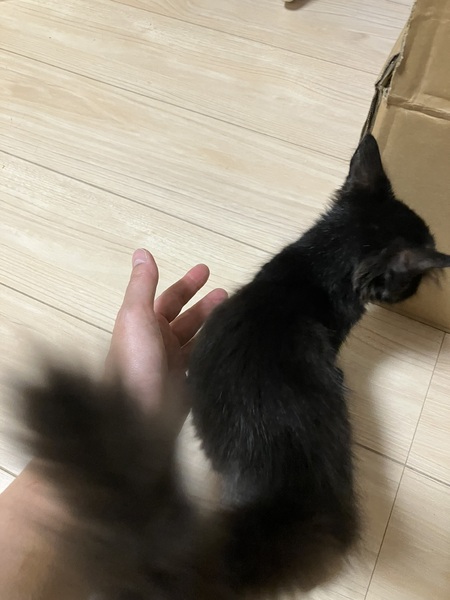 | 特徴(性格など) | 生後3ヶ月弱の黒猫の女の子です。 ガリガリに痩せて道路をウロウロしていたため2日前に保護しました。 目の色はイエローで毛艶も良く、毛皮もふわふわで手触りも良いです。 フミフミやゴロゴロなど仕草もかわいくかなりの甘えん坊で人馴れしていることから捨て猫の可能性が高いです。 トイレも一度で覚え、いたずらもしない賢い子です。 猫エイズ、白血病ともに陰性で虫は除染済み。ノミダニもありません。 ワクチンは8月23日接種予定です。 |