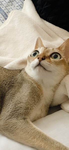 | 特徴(性格など) | 甘えん坊の女の子です。 体も小柄で(現在2.8kg)可愛らしく、声も小さく可愛いですが、お返事するくらいでほぼ鳴きません。 スリスリ甘えん坊ですが、臆病なので慣れるまで時間がかかるかもしれません。 *猫種 シンガプーラ *毛色 セピアアグーティ *目色 グリーン *完全室内一頭飼いでしたので、お家に迎えてから1度予防接種したのみです。 今年3月に血液検査しましたが、異常ありませんでした。(検査結果用紙あり) |