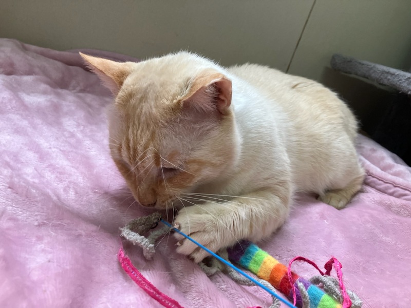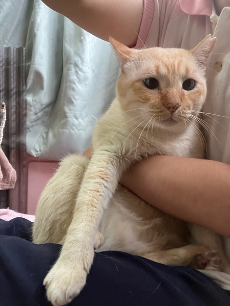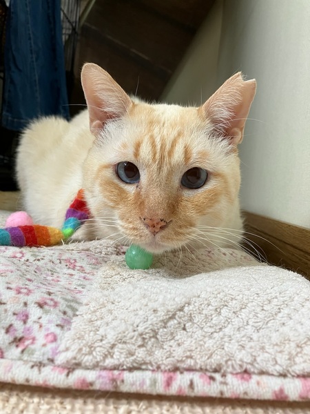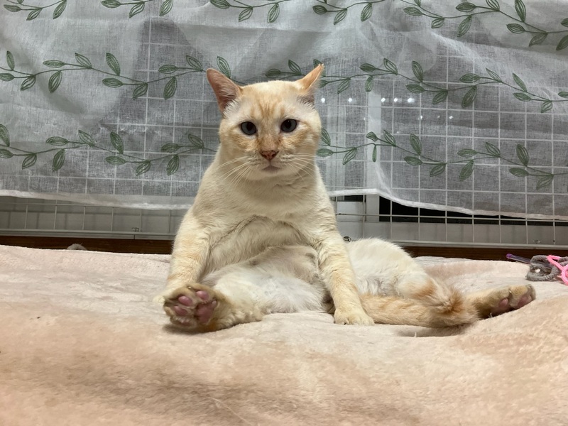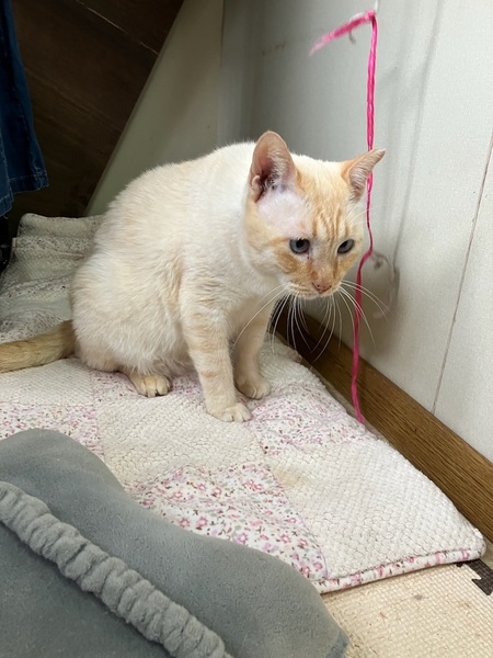 | 特徴(性格など) | 年齢は不明で、元ボスと思われ、保護時は気性が激しく、猫パンチをしてきたり、シャーシャー言っていました。 エラが張っている為、喧嘩時は向かっていく勇敢なタイプだったはずとの事です。 最初は私がビビりながら、攻撃されないように恐る恐るお世話していました。 ですが、ボスというのは元々温和で、優しく、甘えん坊と言われており、まさに現在はその通りになってます。 ちょっと臆病過ぎるくらい、自分より体も小さい子達の事を怖がっており、あまり活発には表に出てこず、隠れられる目立たないところでひっそりとしていて、肩身が狭い状態です。 表に出てくる時も警戒しながらで、私が近くに来ると安心して出て来てくれます。だいぶ人間のことを信頼してきてくれてるようで初めての人が来ても他の子よりも逃げず、触られてくれています。 最初は見た目もだいぶ汚れていたり、目つきも鋭かったですが、今では綺麗なミルクセーキみたいな癒される毛色で、とっても可愛いお目目くりくりなつぶらな瞳で表情もだいぶ柔らかくなりました。こんなに変わるもんなんだなとビックリしました。外ではきっと気を張らざるえなかったから仕方がなかったんでしょうね。 私の側に来ようとしてくれたり、時々猫部屋に泊まるのですが、就寝時には私の腕の中で寝たり、撫でると興奮してフガフガ言って、とっても気持ち良さそうな表情をしてくれて、思わずギュッとしちゃいます。 抱っこや膝の上に乗るのは嫌いじゃないみたいで、抱っこされるがままだったり、膝の上から降りようとせず逆に嬉しいようです。大きさ的に人間の赤ちゃん的な感覚になり、あまりの可愛さにぎゅーっとしちゃいます。 遊ぶようにもなり、猫じゃらしで玉取りしてくれて、その時のお目目がまん丸になる表情と玉取りするお手手がやっぱり可愛いです。 れんくんは、はまる可愛さを持ってます。 れんくんはエイズキャリアです。エイズは感染率も極めて低いウィルスで、キャリアはエイズのウィルスを保有してるだけで、発症しているわけではありません。ウイルスを持っているすべての猫が発症するわけではなく、キャリアであっても室内でストレスの少ない環境で過ごさせてあげる事でずっと発症せずに、そのまま天寿を全うする猫ちゃんがほとんどとの事です。 ちなみにうちの家猫ちゃんは検査してない子もおり、ウィルスを持ってるのかわからない状態ですが、みんなと一緒に普通に楽しく暮らしております。それと関係なく癌で亡くなってしまった子がいます。エイズとは関係なく全く別の病気で亡くなる子もおり、陽性・陰性で平均寿命に差がないとの統計も出ているとの事です。 エイズキャリアが気になる方は、1匹飼いや同じ陽性の子と飼うか、部屋を別にする等をご検討してみていただいてはいかがかと思います。 ご理解のあるエイズキャリアでも関係なく快く受け入れて下さる、心優しいご家族様に出会えることをれんくんと心より願い、お待ちしております。 れんくんに安心安全な家族の温もりをた〜くさん味わせてあげてください。 安心していつでも家族に甘えられてたっぷり可愛がってくれる、のんびり楽しく幸せに暮らせる優しい素敵なご家族さんに出会えたらいいなと思っております。 どうか、れんくんをよろしくお願いします。 少しでも気になる方は、猫部屋がありますのでぜひ見に来てあげて下さい。 県外の方もTV電話やLINEで動画を見ていただくこと可能ですので、お気軽にお問い合わせ下さい。 よろしくお願いします。 |