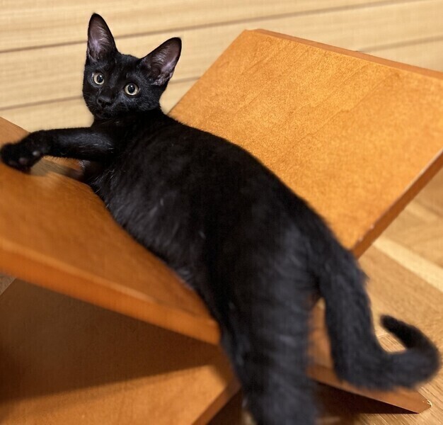 | 特徴(性格など) | ◆ナツオくん 立派な鍵しっぽの元気な黒猫男子 ●月齢の小さな子猫は、以下の条件についてご了承の上で応募をご検討下さい。 ◆お留守番の少ないご家族を希望します。 ◆2匹でお迎えくださるご家族を優先いたします。 ◆小さなお子様のいるご家庭は状況によりお断りする場合がございます。 ◆高齢者のみのご家族からの子猫のお申し込みはお受けしていません。 ○沖縄県内の公園で保護されました。 ○生後4ヶ月くらい(2023年9月中旬時点)の黒猫の男の子です。体重は2.01kg(2023年8月15日時点)です。 ○長い鍵しっぽがチャームポイントです。見事にL字型に折れています。 ○人懐っこく穏やかないい子です。 ○好奇心旺盛です。 ○おもちゃで遊ぶのが大好きな元気な男の子です。 ○同じく里親募集中で、一緒に暮らしている「アルパチーノ」「デニーロ」「ブリジットバルドー」「ソフィアローレン」とは兄妹のように仲良く遊んでいます。 ○元気にすくすく育っています。 ★ワクチン2回接種済み、不妊手術済み。 ★猫エイズ、猫白血病ともに陰性。 ○9/17(日)開催の譲渡会に参加予定!下の要項をお読みいただき、ぜひ会いに来てください♪ ☆★☆★☆★☆★☆★☆★☆★☆★☆★☆★☆★☆★☆★☆★☆★☆★☆★☆★☆ ~9月17日(日)市ヶ尾にて譲渡会開催!~ ◎場所・・「東急ドエル市ヶ尾プラーザビル2階集会場」 神奈川県横浜市青葉区市ヶ尾町1154-2 田園都市線「市ヶ尾」駅西口より徒歩約2分 ◎日程・・9月17日(日)(雨天決行) ◎時間・・13時から16時(受付は15時30分まで) (会場に利用可能な駐車場はございません。近隣のコインパーキングをご利用ください。) *12時45分より入場ご案内を致します。それより早く来て並ぶ事はご遠慮下さい。 *参加の際は、マスクの着用、アルコール消毒のご協力をお願いいたします。 *当日は検温の上、体温が37度以上の方はご参加いただけません。 *混雑状況により、入場制限をさせていただく場合がございます。 ※参加予定の犬猫は体調により参加できない場合があります。ご了承ください。 ☆★☆★☆★☆★☆★☆★☆★☆★☆★☆★☆★☆★☆★☆★☆★☆★☆★☆★☆ |