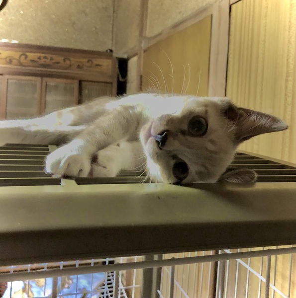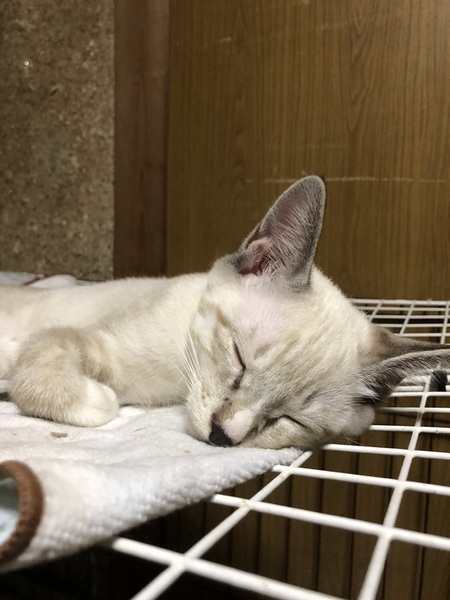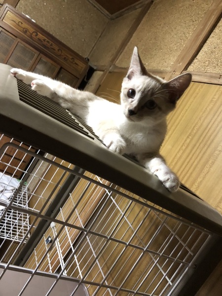 | 特徴(性格など) | 【白にうっすら茶毛トラ ブルーアイの男の子】 ・性格➖にゃんプロ大好き、遊ぶの大好き!好奇心旺盛 ・体格➖細め、足長めのモデル猫体型、折れしっぽ ・血液検査➖仔猫のためしておりませんが、母猫が猫エイズ・猫白血病陰性のため仔猫も陰性の可能性大。 |