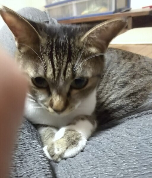 | 特徴(性格など) | 膝には自ら乗ってきますが 抱き抱えられるのは苦手です。 ツンデレ女子です。 お尻を向けて近付いて来ます。お尻ポンポンされるのが好きです。 声は、少し高めの優しい声です。 エイズ・白血病は陰性です。 駆虫も済んでいます。 ワクチン2回目接種済みです。 |