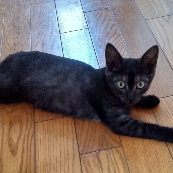 | 特徴(性格など) | 仮名:黒羽(クロハ) 性格は、極度の怖がりです。 人を怖がり、預かりさんに心を開くまで1ヶ月かかりました。 今は預かりさんに撫でられると頭をこすりつけ、尻尾を立てて応えます^^ でも、聞き慣れない音や見慣れないものを目にすると、 とっさにシャーッします。 怖い!と思うのでしょうね。 慣れた場所や人相手だと、呼びます^^ 遊んで〜や怖いからそばにいて〜の意味だと思います。 健康状態 預かりさん宅にきてから便もずっと良好です。 風邪症状もなく、食欲も普通です。 細身の体型は兄弟猫も同じようでした。 体重 1,500g(9/2) 猫エイズ、猫白血病陰性 マイクロチップ装着済 今後の医療措置 なし |