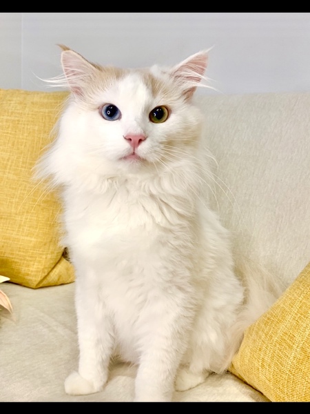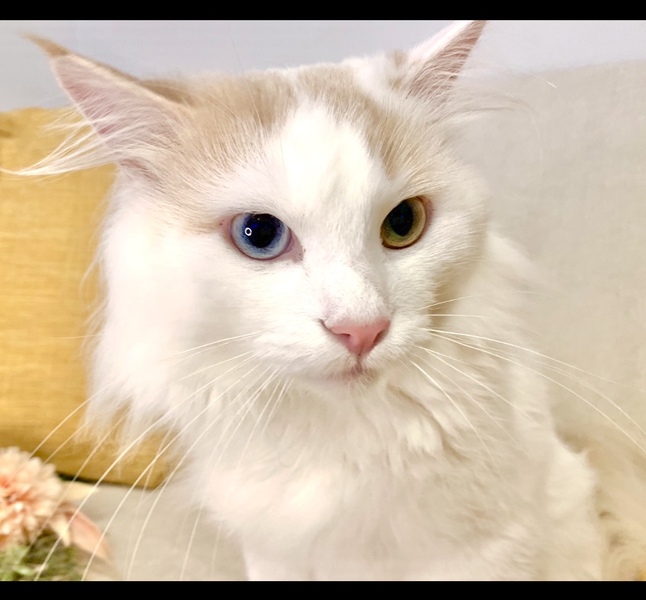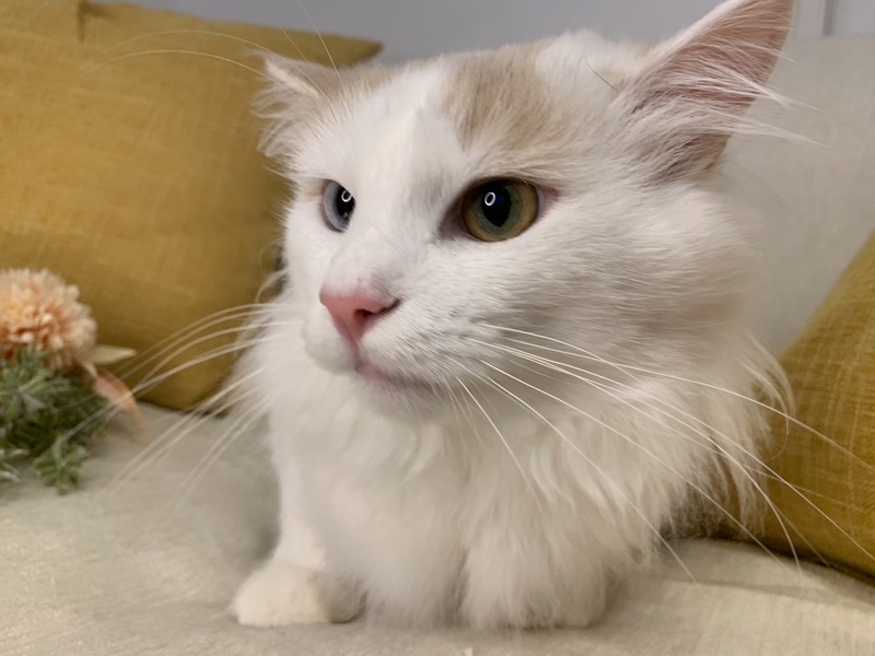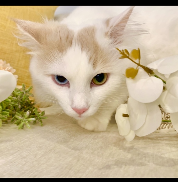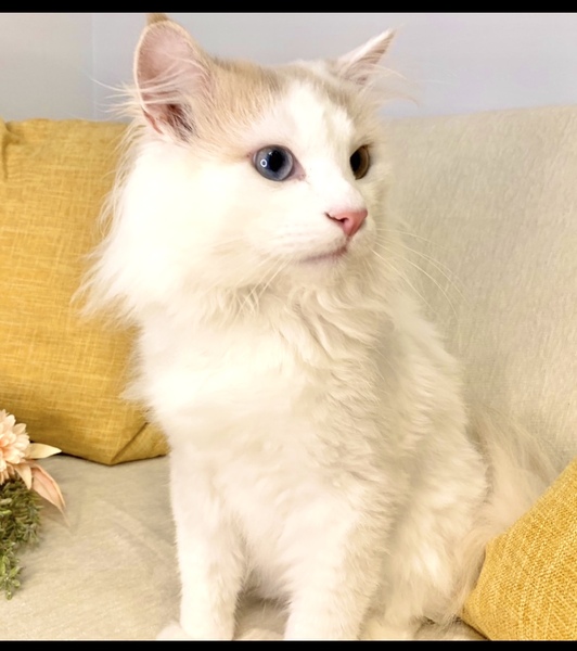 | 特徴(性格など) | オッドアイのレアな純血ノルです。 毛吹きがよく、被毛が長くてフサフサなゴージャスイケメンです。 ※シャンプーや管理が大変なため、今年はサマーカットしています。毛が短くても御了承願います。 小さなころから大切に飼っていたので、非常に人慣れしています。 とてもナデナデが好きで、なでるとお腹をみせてゴロンゴロン甘えてくれます。 つい最近まで去勢をしていなかったので、スプレーをする癖がついています。 スプレーやその他迷惑をかけることもあるかもしれませんが,ご理解いただける方にお譲りさせていただきたいです |