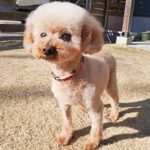 | 特徴(性格など) | 【仮名】 アザミ 【犬種】 トイプードル 【カラー】 アプリコット 【体重】 4.2キロ 【性格】 おとなしく控えめで優しい子です。ビビリちゃんで人懐っこいタイプではありませんが、好きな人の後をくっついて歩いたりしています。他のワンコには興味が無く遊んだりはしませんが、穏やかな性格なので問題なく一緒に過ごせます。 【ご飯】 ドライフードに缶詰めをトッピング。ご飯やオヤツが大好きな食いしん坊です。 【お散歩】 車や人に立ち止まることもありますが、上手に歩きます。 【お留守番】 フリーで過ごしています。 【トイレ】 練習中で、普段はオムツを着用しています。 【その他】 避妊手術、歯科処置、良性乳腺腫瘍切除が済みました。 |