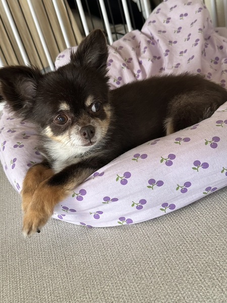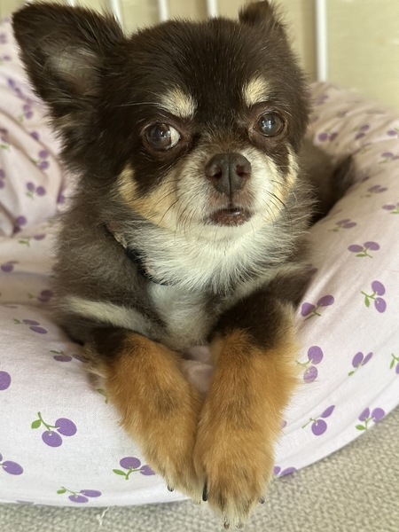 | 特徴(性格など) | 【はじめに】 ◉預かりブログ・HP・譲渡条件を必ず熟読の上、アグリドッグレスキューの専用フォームからご応募お願いいたします。 アグリドッグレスキューHP https://aguri.nomaki.jp/ 預かりブログ 『気づけばそこは沼だった~しらたまママの預かり日記』 https://ameblo.jp/otomo083084/ 譲渡条件 http://aguri.nomaki.jp/z.html ★【アグリドックレスキュー応募アンケートフォーム】★ http://my.formman.com/form/pc/HSiHA19xGo1sxlwu/ ■特徴(性格など) ・仮名 こだま ・チワワの女の子(チョコタン) ・年齢 13歳(2010年5月1日生まれ) ・体重 2.9kg ・混合ワクチン接種 済 ・狂犬病予防接種 済 ・血液検査 済 ・フィラリア(-) ・マイクロチップ装着 済 ・避妊手術 済 経過観察中 ・心臓僧帽弁閉鎖不全症 ・腎臓に結石あり ・胆嚢にも結石あり 現時点では投薬の必要はなく、獣医師より経過観察と診断を受けています。 ■性格 常にべったりではありませんが、人が好きで甘え上手な女の子です。 チワワらしく警戒心が強く臆病な一面もありますが、家庭犬として様々な経験をしてきたようで、落ち着いています。良く動く元気なシニアさんです。 つぶらな瞳と小さな鼻、マズルがちょっと短いところがまるで子犬のような絶妙なバランス。 チワワにしては手足が短くしっかりしており、ぽてっとしたフォルムが堪らなく可愛いです。 他犬とは相性があります。 ■ご飯 ドライフードのみは食べにくいようなので、ドライフードに野菜とお肉を煮込んだスープをかけて食べています。 ドライフードのみ残すことがありますが、最近は完食する率が高くなりました。 ■お散歩 お散歩は上手です。最初は外に出ると緊張していましたが、最近はクン活したり、マーキングしたりと少しずつ慣れてきました。 心雑音があること、暑い時期であることもあり30分くらいをのんびり歩いています。 ■トイレ トイレシートの認識があり、今のところ100%の成功率です。 室内でもお外でも大小できます。 散歩に出るとすぐにうんちをします。 ■お留守番 お留守番も上手です。 今のところフリーで留守しても物を齧ったり壊したりはありません。 (環境が変わるとまた様子が変わる可能性があります) ■吠え ご飯の準備をはじめると興奮して吠えます。 チワワなので警戒心があり、物音、他犬に反応して吠えます。 家庭犬として13年暮らしてきた基盤があり、トイレは完璧、お散歩も上手です。こだまちゃんと一緒に過ごしているとこだまちゃんの行動や仕草から愛情を受けて過ごしてきた過去が読み取れます。 お世話も行き届いていたお陰で13歳ですが若く見えますし、ブラッシングや足拭きなどもすんなり受け入れてくれて助かっています。 目の周りだけは触ろうとすると嫌がりますが許容してくれます。 こんなに可愛くて性格の良い子なので、これからはこだまちゃんの全てを受け入れてくださるご家族さまとゆったりしたシニアライフを過ごして欲しいと願います。 こだまちゃんが二度と1人にならないように、覚悟を持って一生守るくださるご家族さまからのご応募お待ちしております! |
