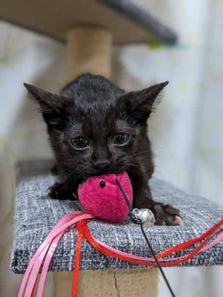 | 里親募集する理由 | 犬の飼主さんが散歩中、カラスにつつかれかけている子猫を見つけて保護されました。 | ||