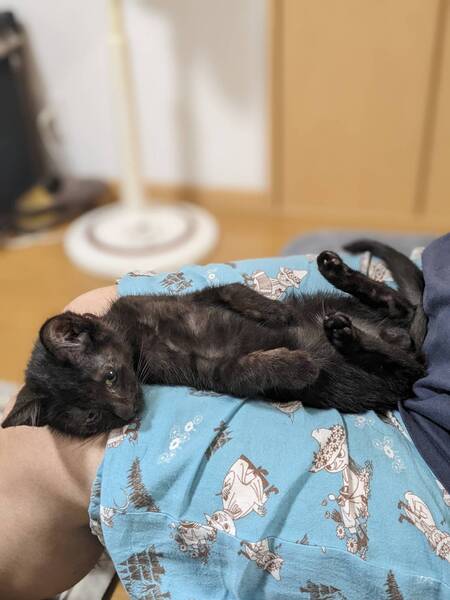 | 特徴(性格など) | 拾われた当初は猫風邪をひいていて弱っていましたが、8月20日時点で体重は1,200gまで増え、元気すぎるほど元気です。 人懐こく、人の膝の上が好き。預かりさん宅の猫に育てられたので、猫も好き。はしゃぎすぎて犬に怒られても、すぐケロっとしている陽気な性格です。 黒猫ですが、部分的にちゃとらが入っていたり、耳毛は白かったり、よく見ると不思議な毛色です。 ウイルス検査、初回ワクチン済。猫風邪はすっかり良くなり健康優良児です。 黒ごま君の日々の様子は、預かりさんのInstagram @poteko_wa Ycdなんくる俱楽部のブログhttp://ycdclub.blog.fc2.com/でも紹介しています。 くろごま君は9/3の高槻市 芥川東部会館での「わんにゃん譲渡会」に参加予定です。それまででも個別お見合いできます。 気になる方はまずお問合せください |