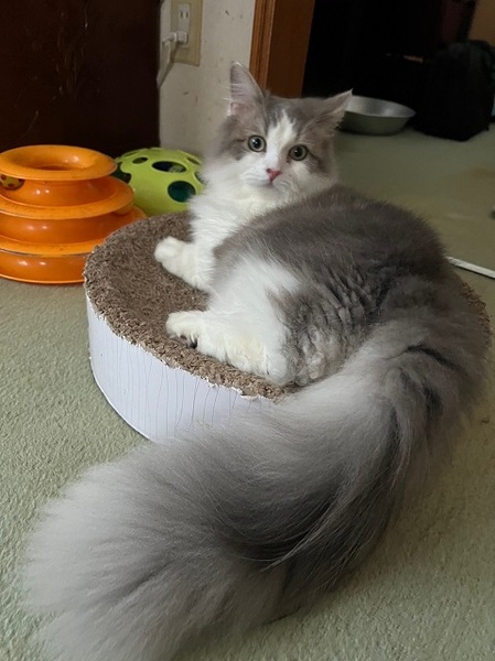 | 特徴(性格など) | ☆☆☆ご希望の方は、以下のアンケートフォームにご記入の上、送信してください☆☆☆ ねこ親希望アンケート→ http://chibawan.net/contactform_cat 【猫No】3712 【愛称】なめろう 【性別】オス 【年齢】推定1才1ヶ月(22/07/24生) 【毛色】ブルータビー&ホワイト 【体重】3.7㎏(23/08/07現在) 【状態】去勢手術済、マイクロチップ登録済、ワクチン済(23/07/20)、血液(ウイルス)検査済(エイズ-・白血病-)、ノミ・ダニ駆除済、検便駆虫済、トイレ躾済 【預かり場所】神奈川県川崎市 【日記】renhana7(インスタグラム) https://www.instagram.com/renhana7 【経緯】横浜市動物愛護センターより引き取り 【性格】きれいな長毛の男の子です。長毛ゆえ、猫砂や爪とぎのカスなどを付けていることも多く、ブラッシングなどの毎日のお手入れが欠かせません。ブラッシングは背中やしっぽはさせてくれますが、お腹側は嫌らしく甘噛みをすることがあります。 だっこは好きではないようですが、撫でてもらうのは好きです。すぐそばに来て甘えてくれます。遊んでいてテンションが上がると甘噛みすることもあるので、小さいお子様がいるご家庭には向いていないかもしれません。おもちゃは気が向いたときに遊びます。 相性次第ではありますが、他猫との同居も可能だと思います。攻撃性はなく、同じ空間にいてもケンカしない程度に仲良くできます。 食欲は旺盛です。今のところは好き嫌いないようです。 おっとりとした穏やかな性格ですが、意外に素早く動くことがあるので脱走には要注意です。 【その他】愛情いっぱいの終生飼養、猫にあった生活スタイル、完全室内飼育、定期的なワクチン接種などの健康管理をお約束いただけ、迷子防止に細心の注意を払ってくださる、関東近県のご家庭でアンケートに快くお答えいただける方からのお問い合わせをお待ちしています。 なお大変申し訳ありませんが、主にお世話してくださる方がご高齢の方のご家庭である場合のお申し込みにつきましてはお断りさせていただきますので予めご了承ください。 |
