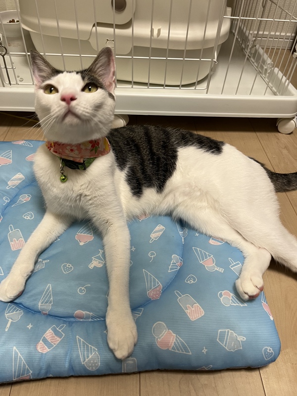 | 特徴(性格など) | 白黒のハチワレ! 小さな男の子みたいに元気いっぱいでやんちゃな甘えん坊さんです。 凄くなつっこくてかまってちゃん! スラリと長い体と尻尾で、ザ日本猫のイケメン猫です。 食欲旺盛でウエットタイプのご飯が大好き! 好奇心旺盛でオモチャ大好きな猫ちゃんです。 ワクチン接種済み! 去勢手術済み! マイクロチップ装着済み! |