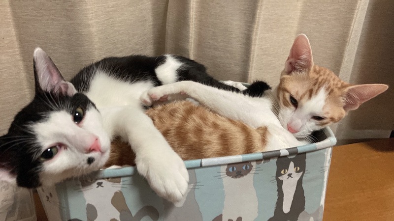 | 特徴(性格など) | 1匹ずつで里親さん募集をしていましたが、 まるで本当の兄弟のように仲良しですので、 これからもずっと一緒に可愛がってくださる 里親さんへの譲渡を希望しております。 ☆ハチワレちゃん☆ 保護した当初は怖がりさんでしたが、 茶白ちゃんを初対面から気に入り、 すぐに仲良くなりました。 目を細めて嬉しそうに 「サイレントにゃー」をするお顔が とても可愛いです。 ☆茶白ちゃん☆ ハチワレちゃんとは、 ほぼ同じ月齢・体格でしたので、 すぐに意気投合したようです。 ジャンプが得意で、高いところが大好きです。 猫じゃらしが特に気に入っていて 誰よりも高く飛ぼとうと何度でも挑戦します。 お留守番の時や夜の時間は 同じケージで2匹で抱き合って寝ています。 ずっと一緒に遊んで、食べて、 寝てくれている姿は まさに“福ねこちゃん”です!! |
